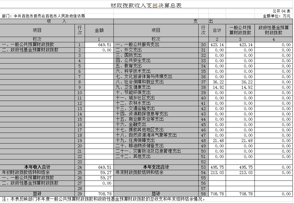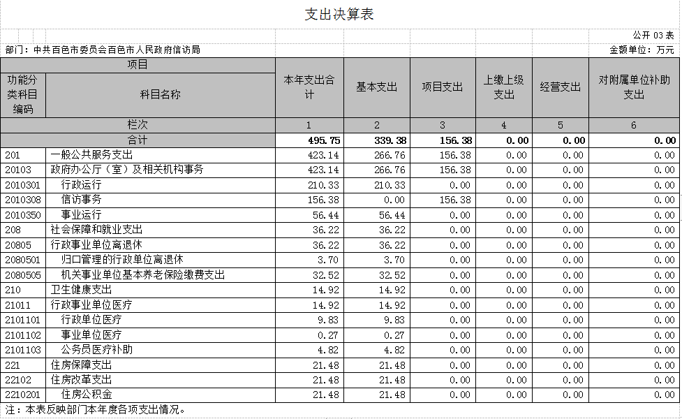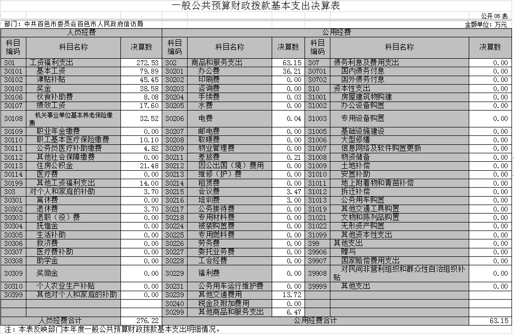第二部分:中共百色市委员会市人民政府信访局2019年度部门决算报表