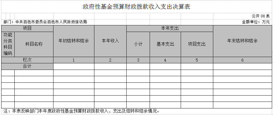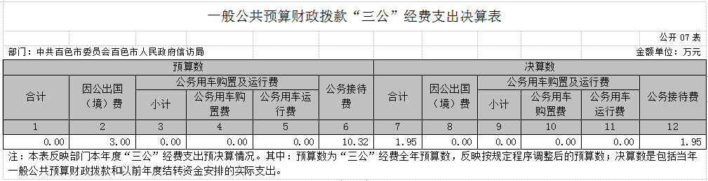 上述报表详见附件(中共百色市委员会市人民政府信访局)2019年度部门决算公开附表。
