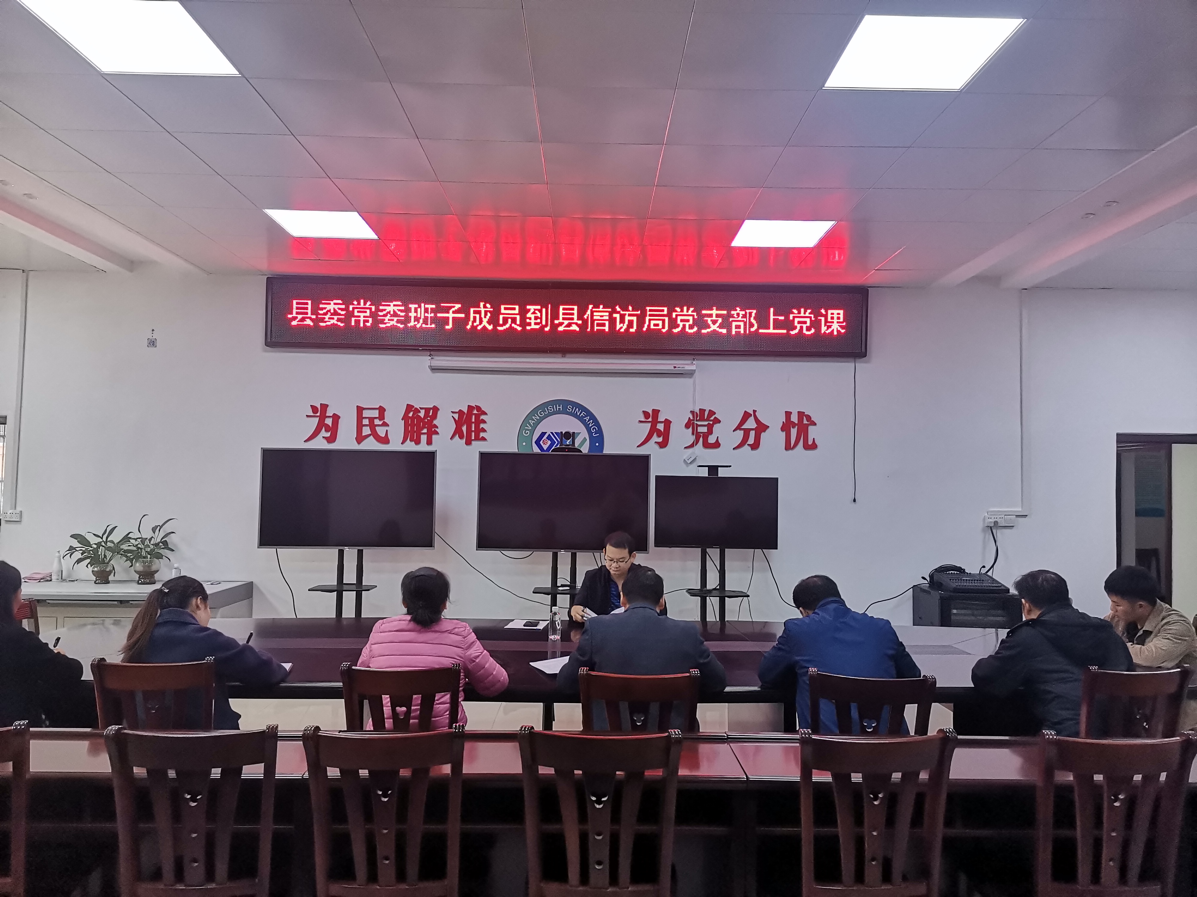 12月4日,田东县委常委、政法委书记覃利飞到田东县信访局宣讲党的十九届五中全会精神并上专题党课。