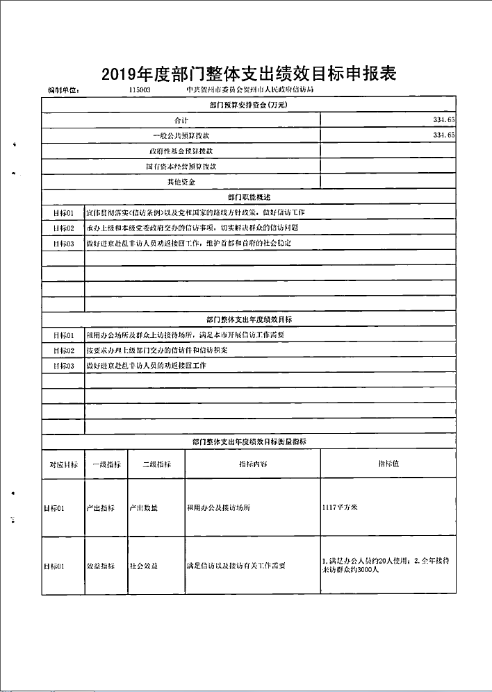 关于批复2019年部门预算支出绩效目标的函